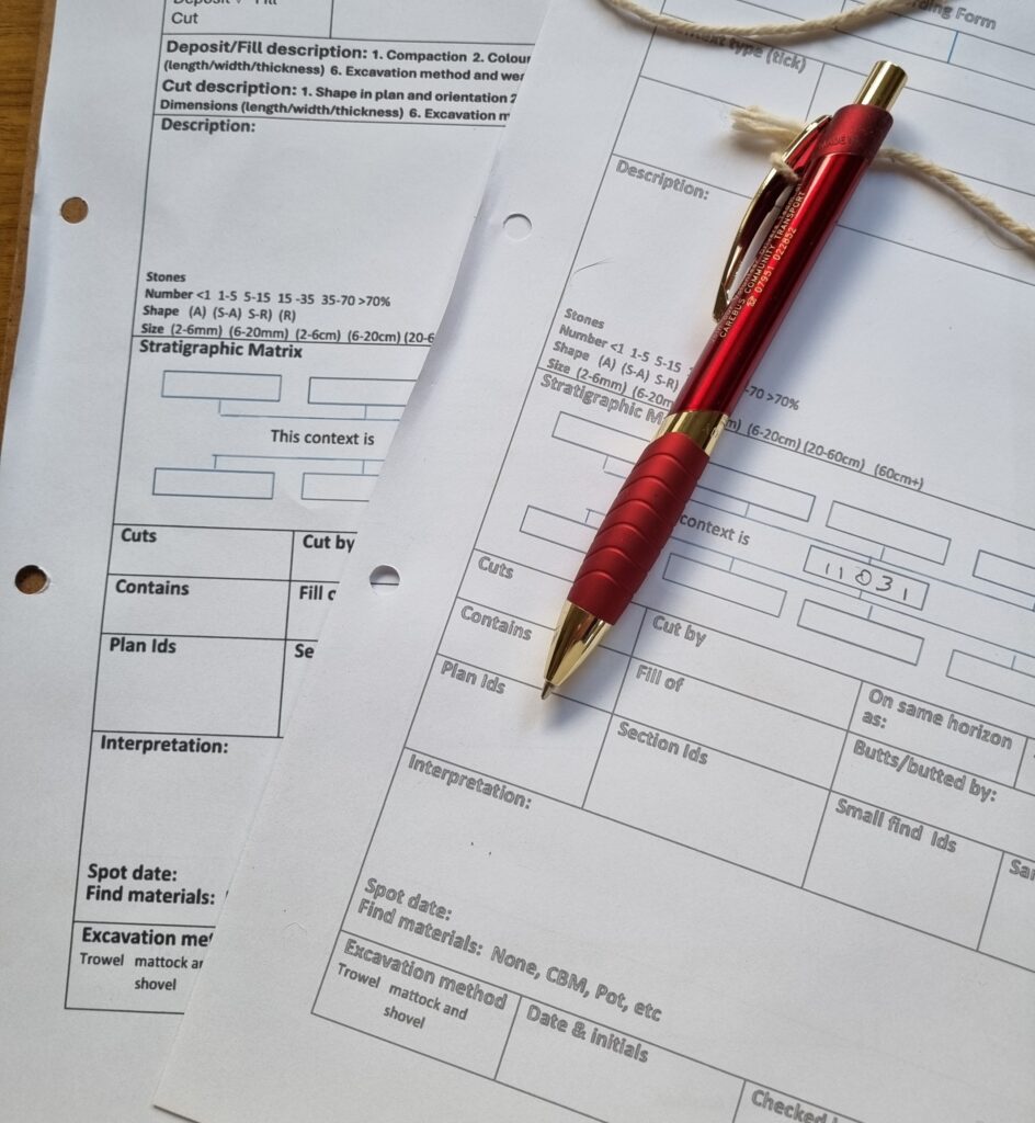 With Anchurus II we have adopted a policy that people working on site use paper forms to record the archaeology. We have done this because, as a voluntary sector organisation, our people are learning to be archaeologists and writing paper records makes for a better learning environment. It allows people to write drafts, make changes and it allows supervisors to review the written evidence and have conversations about what was and should have been written.