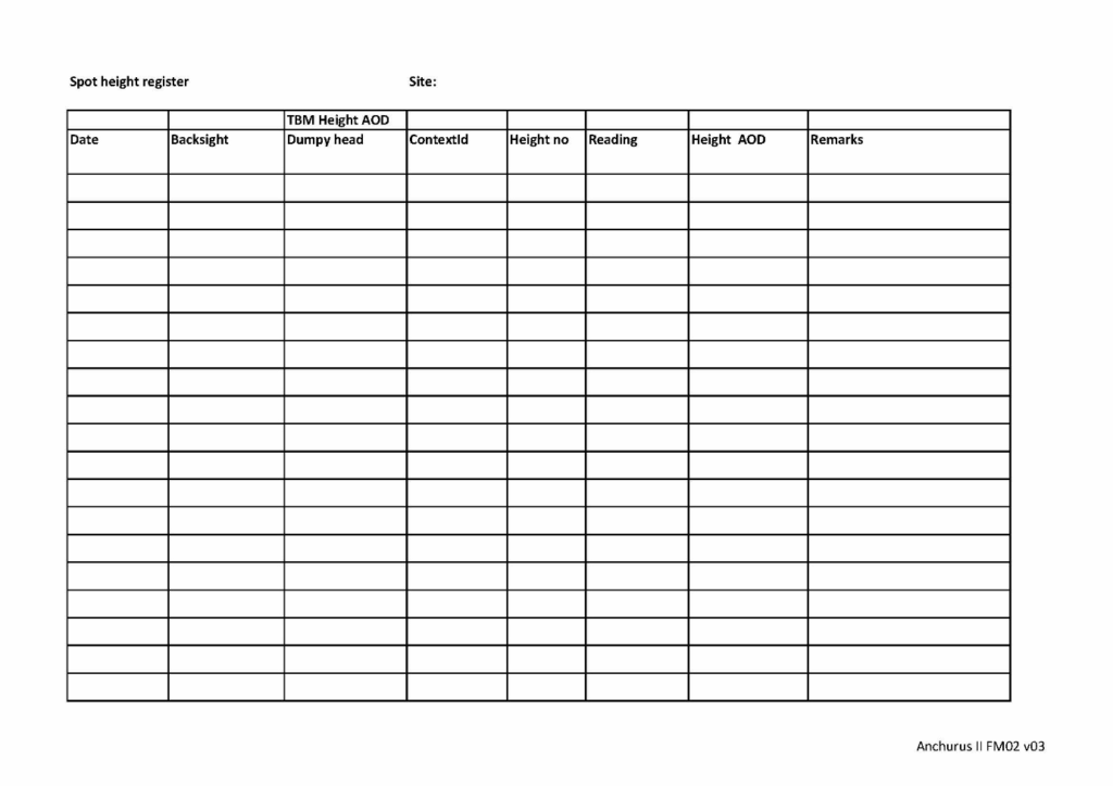 Project leaders are encouraged to download these templates and print off pages for their registers.