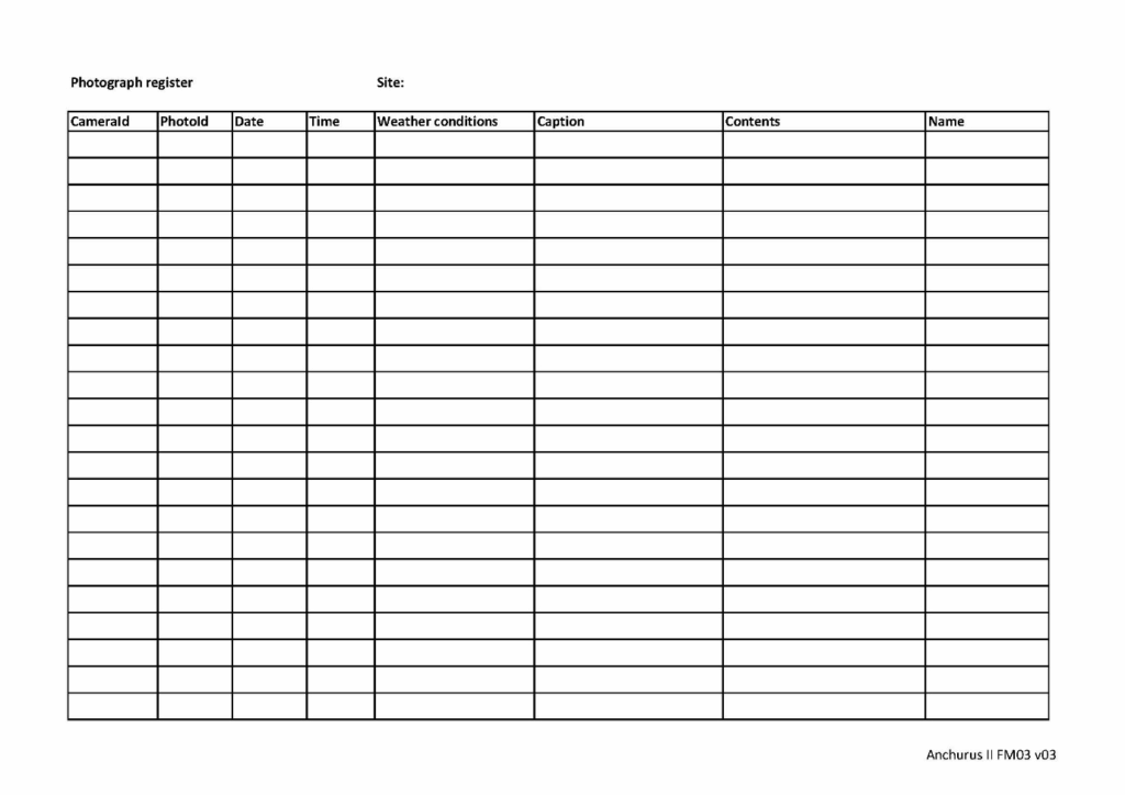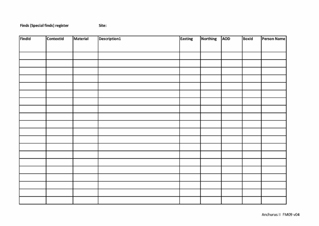 It is up to the project leader to decide whether they have a binder of registers for the site or for each excavation area. Furthermore, they may not need some of these registers, because they have equipment that records register information; for example, a camera that allows you to record photograph details.